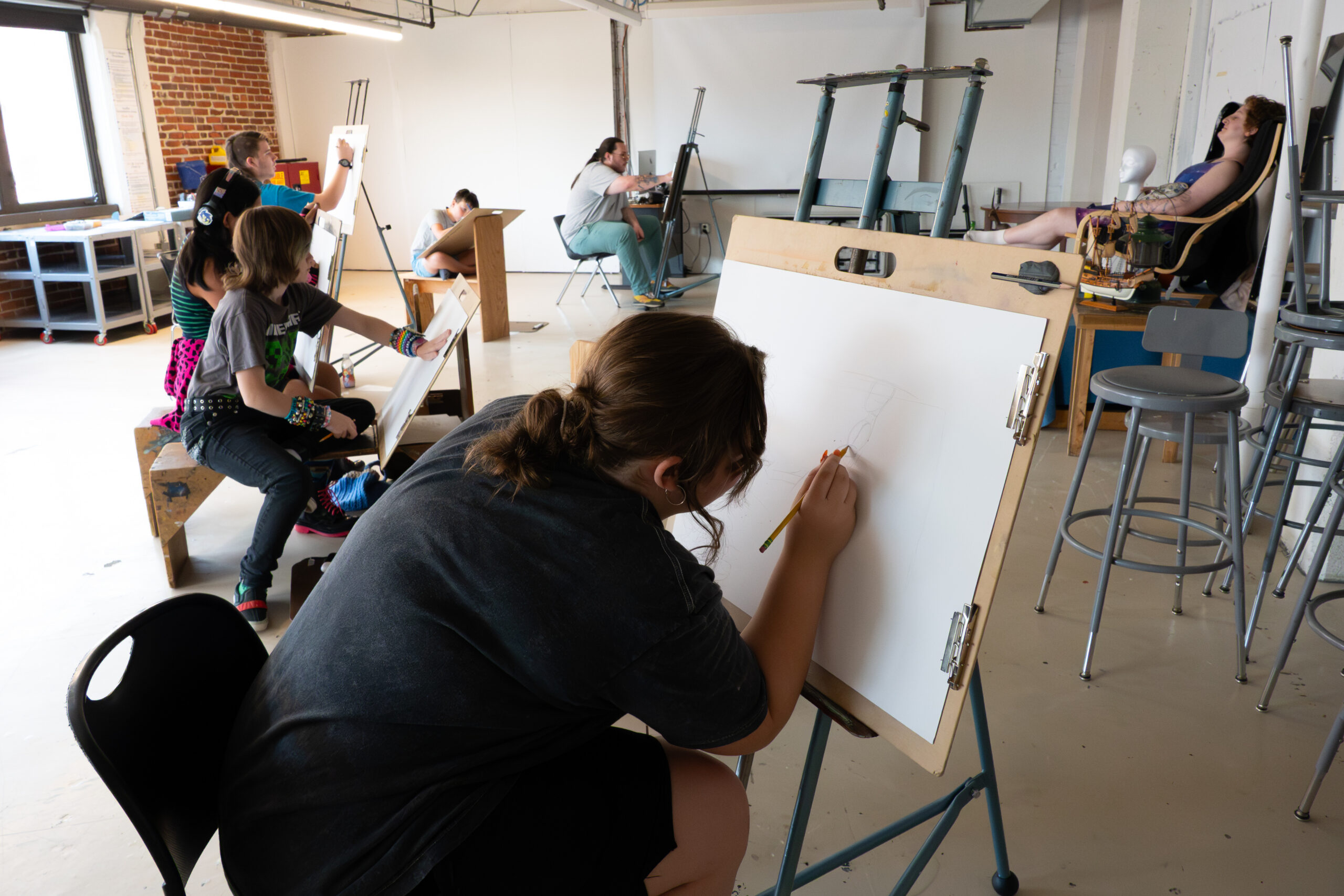 In this camp for grades 7-9, we will learn the fundamental techniques of figure drawing. We will work from photos, skeletons, other references of clothed models, and from a live clothed model while using various drawing materials. Students will learn about the landmarks of the body, measurements, proportions, and very basic anatomy. Camp will culminate in an exhibition of our work on the final day. This is a studio based class with lots of guidance to start followed by one-on-one instruction. Expect to have some creative freedom within the bounds of the assignment!